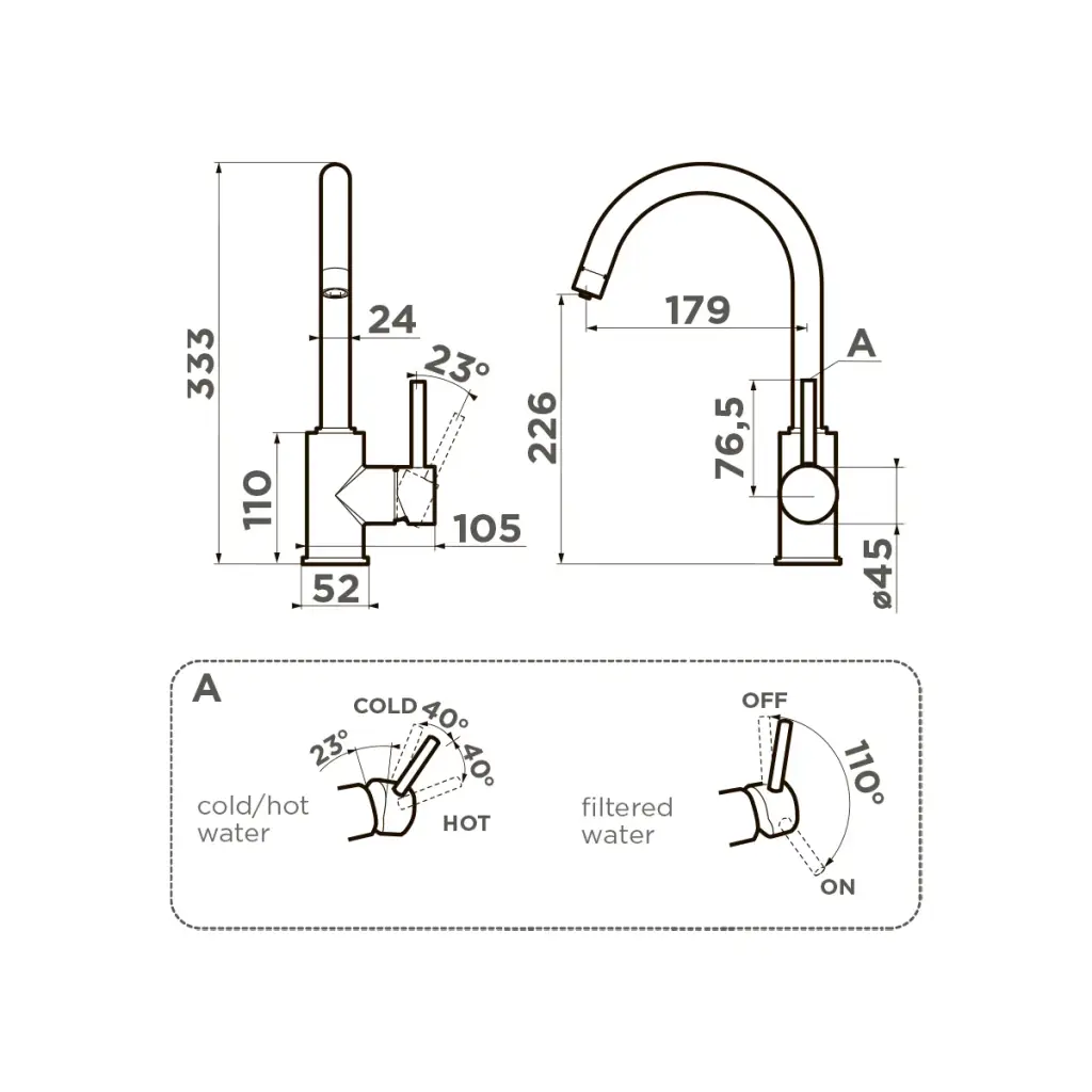 Omoikiri Shinagawa 2 Plus-GR Смеситель для кухни с возм. подкл. фильтр, цвет: Leningrad Grey 4994406