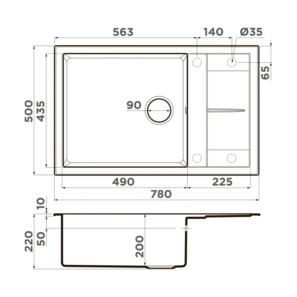 Omoikiri Sumi 86 ES Кухонная мойка из Tetogranit, крыло справа, 86x22 см, цвет: espresso 4997233