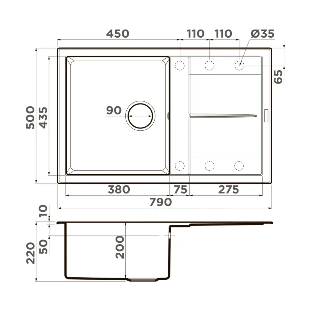 Omoikiri Sumi 78-LB ES Кухонная мойка из Tetogranit, крыло справа, 78x22 см, цвет: espresso 4997232