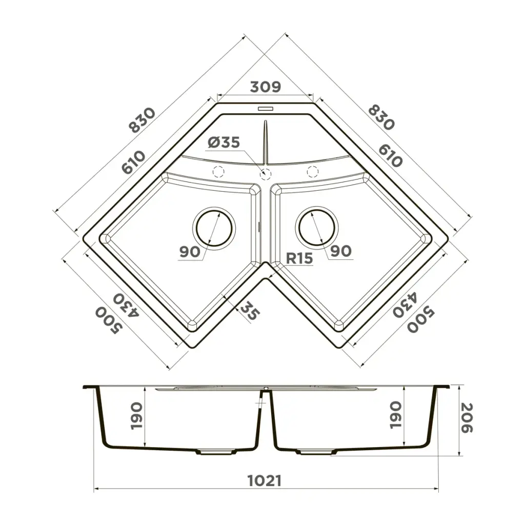 Omoikiri Sumi 83C-BL Кухонная мойка Tetogranit 102,1x83 см, цвет: черный 4993864