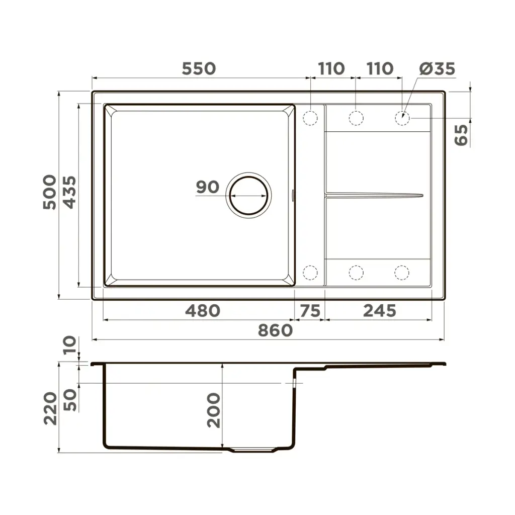 Omoikiri Sumi 86 ES Кухонная мойка из Tetogranit, крыло справа, 86x22 см, цвет: espresso 4997233
