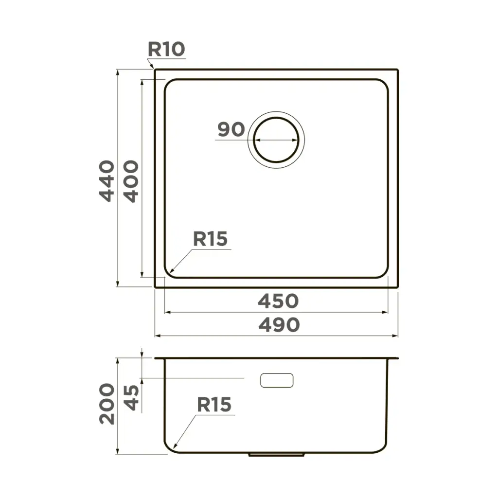 Omoikiri Tadzava 49-U/I Ultra 15-IN Кухонная мойка нерж. сталь 44x44 цвет: нержавеющая сталь 4997115