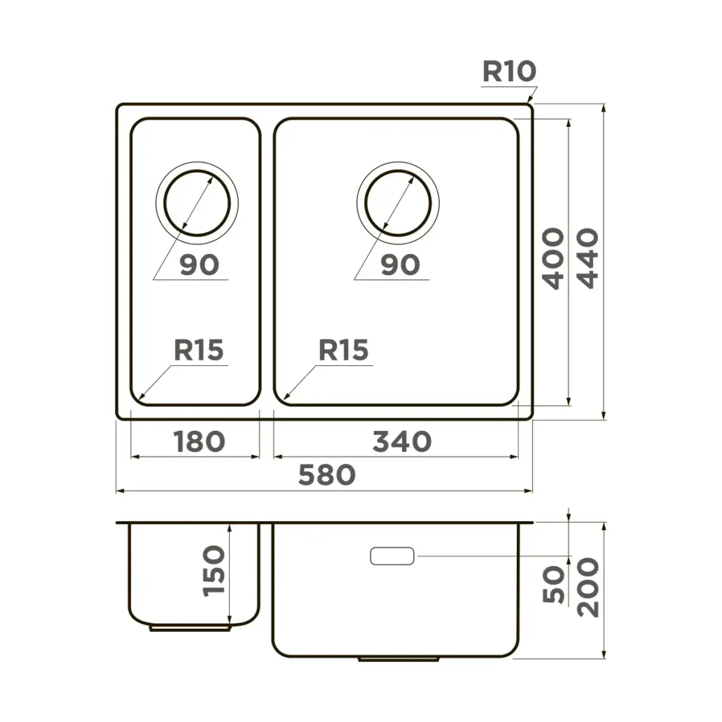 Omoikiri Tadzava 58-2-U/I-R Ultra 15-IN Кухонная мойка нерж. сталь 58x44 нержавеющая сталь 4997117