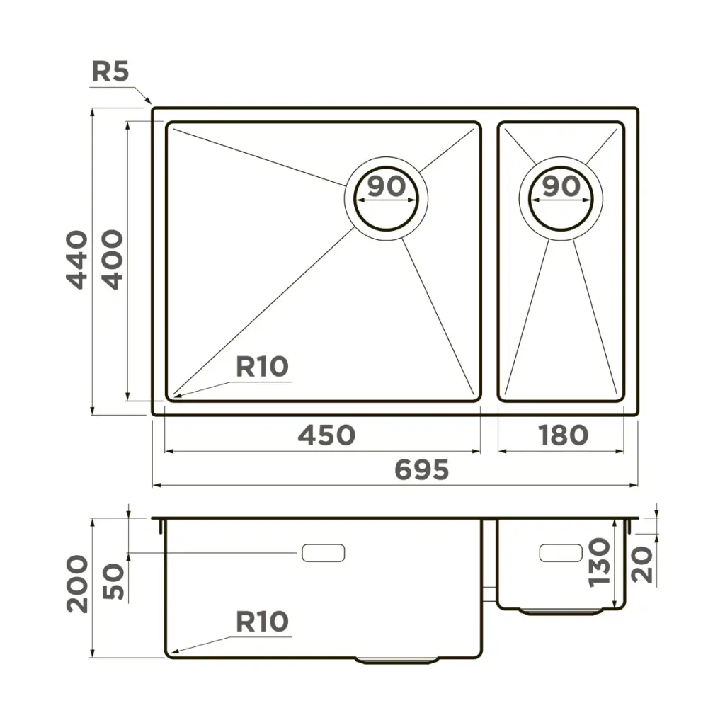 Omoikiri Taki 85-2-LB-U/IF Side-GB Кухонная мойка нерж. сталь 85x44 см, цвет: графит 4997039