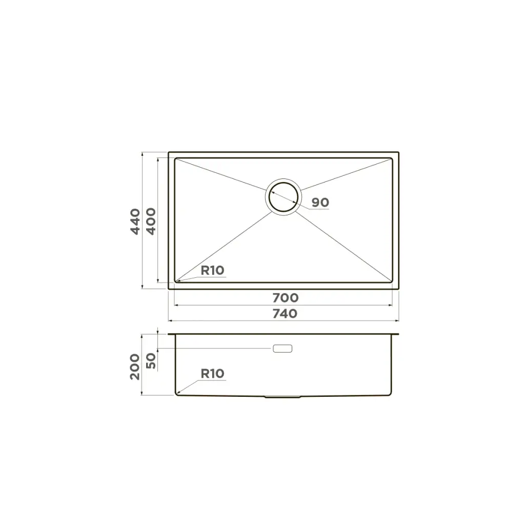 Omoikiri Taki 74-U/IF Side-IN Кухонная мойка нерж. сталь 74x44 см, цвет: нержавеющая сталь 4993170