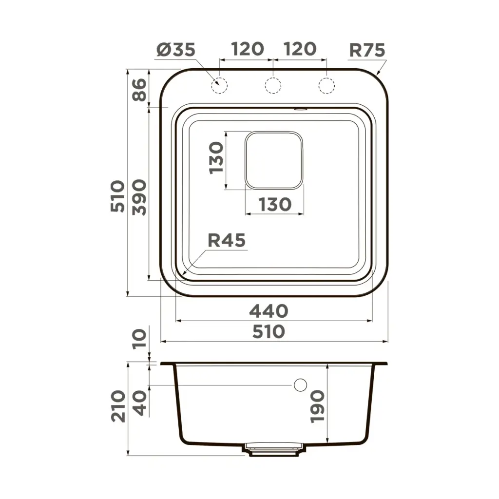 Omoikiri Tasogare 51-BL Кухонная мойка Artgranit 51x51 см, цвет: черный 4993742