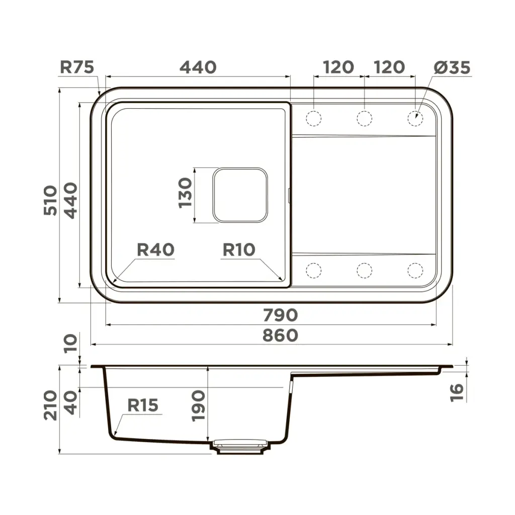 Omoikiri Tasogare 86-DC Кухонная мойка Artgranit 86x51 см, цвет: темный шоколад 4993468