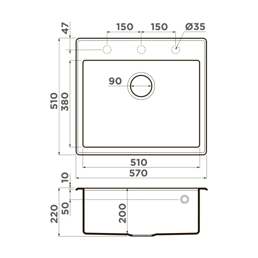 Omoikiri Tedori 57-BL Кухонная мойка Tetogranit 57x51 см, цвет: черный 4993980