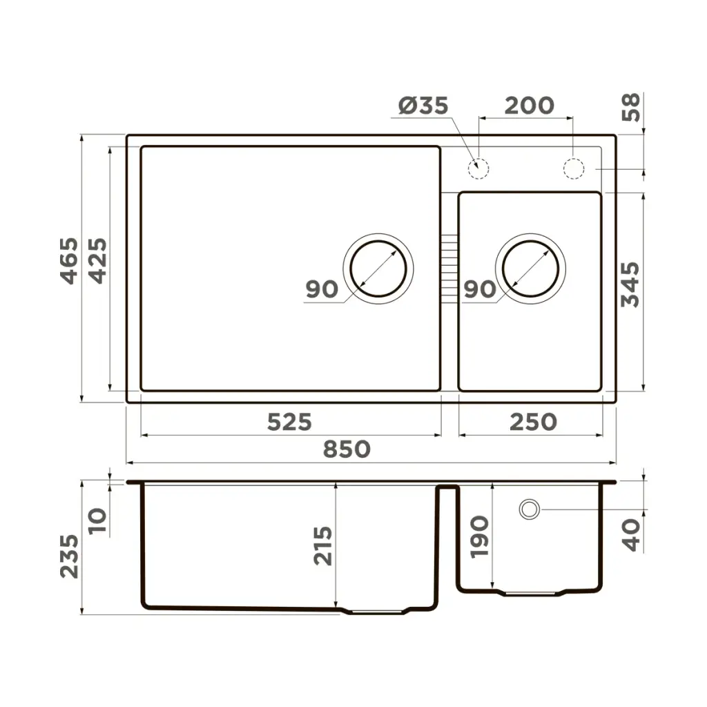 Omoikiri Tedori 85-2-U ES Кухонная мойка из Tetogranit 85x23,5 см, цвет: espresso 4997240