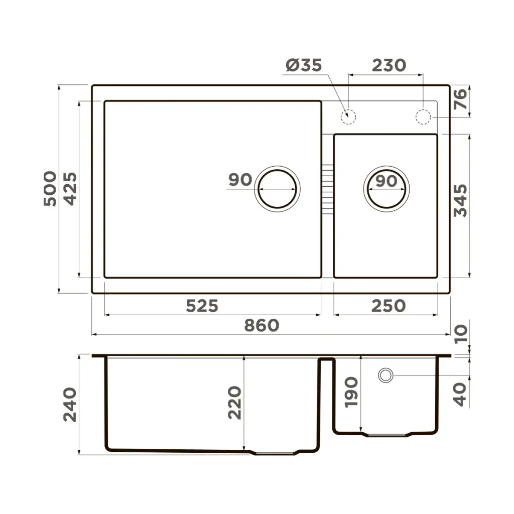 Omoikiri Tedori 86-2-LB ES Кухонная мойка из Tetogranit 86x24 см, цвет: espresso 4997242