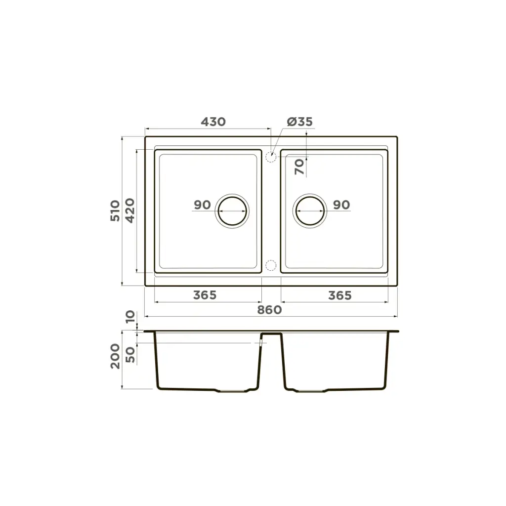 Omoikiri Tedori 86-2-CH Кухонная мойка Tetogranit 86x51 см, цвет: шампань 4993929