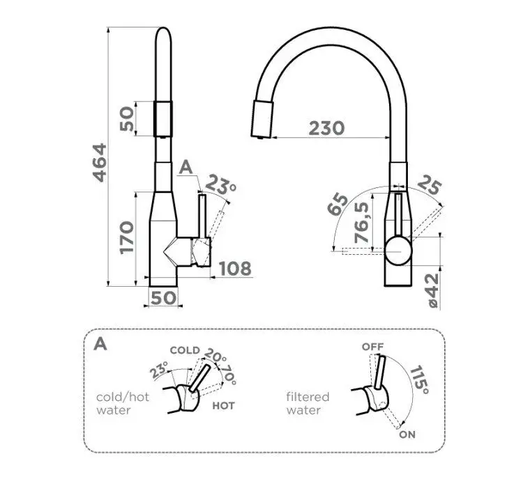 Omoikiri Yatomi 2 Plus BN-WH Смес. для кухни с гибк. изливом и возм. подкл. фильтр, цвет:нерж. сталь 4994345