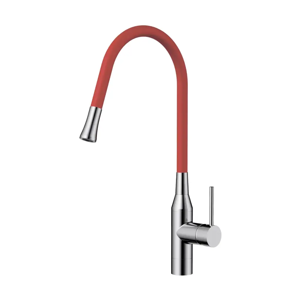 Omoikiri Yatomi-BN-R Смеситель для кухни, с гибким изливом, цвет: нержавеющая сталь/красный 4994248