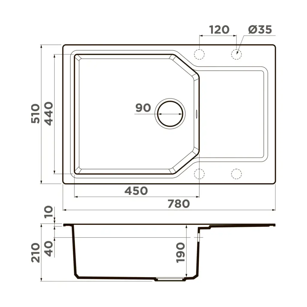 Omoikiri Yonaka 78-LB-BL Кухонная мойка Artgranit 78x51 см, цвет: черный 4993341