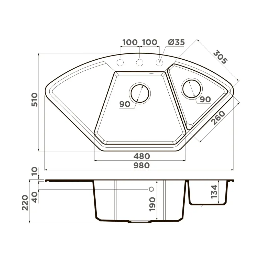 Omoikiri Yonaka 98-C-BL Кухонная мойка Artgranit 98x50 см, цвет: черный 4993716