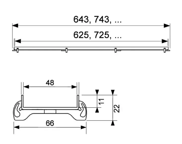 Основа для плитки "Plate" для дренажного канала 100 см 94.3*6.6*h2.2 полированная нержавеющая сталь
