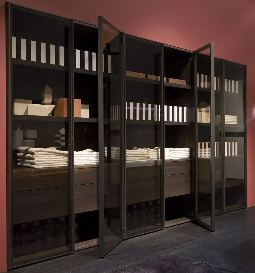 корпус Rovere thermo, фасад и полки Bronze, стекло Transparent Bronze