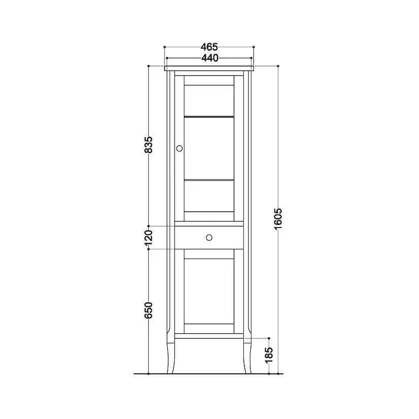 Пенал-витрина напольный, петли справа, 46.5*h160.5, орех