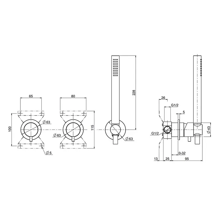 QuadroDesign Source Смеситель для душа, встраиваемый, на 1 потребитель, цвет: brushed stainless steel