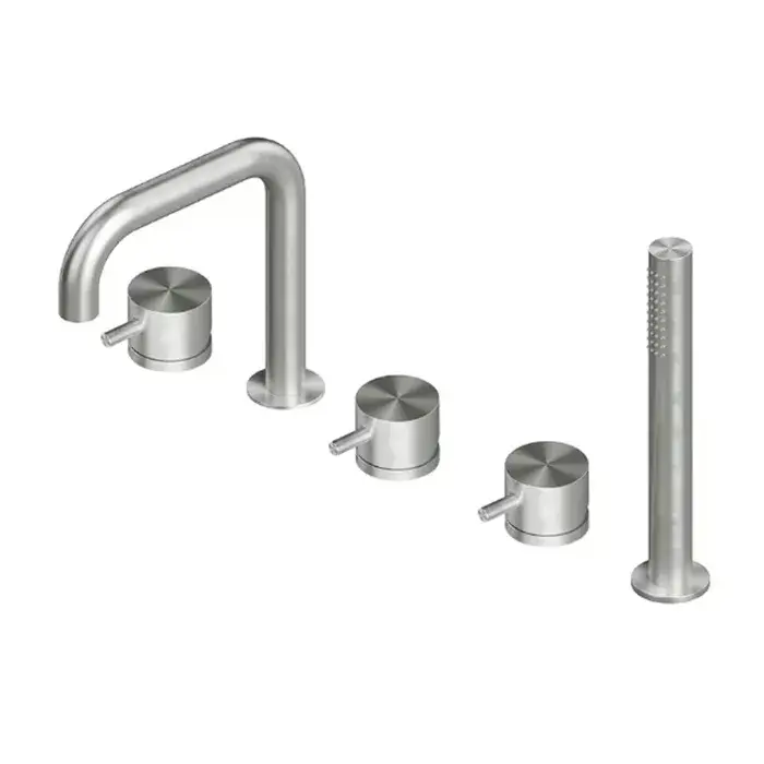 QuadroDesign Source Смеситель на борт ванны с ручным душем, цвет: brushed stainless steel 1295AS