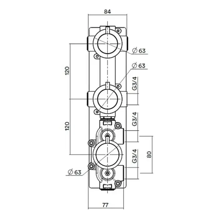 QuadroDesign Встраиваемая часть термостатического смесителя с 2 запорными вентилями IN049