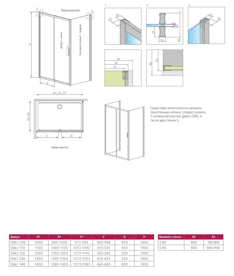 Radaway Alienta S Боковая стенка, прозрачная 5 мм, Easy Clean 80х190h см, цвет: хром глянцевый 10270080-01-01