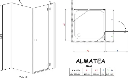 Radaway Almatea KDJ Душевой уголок 80х195h см, правый, Easy Clean, цвет: хром глянцевый 32112-01-01NR