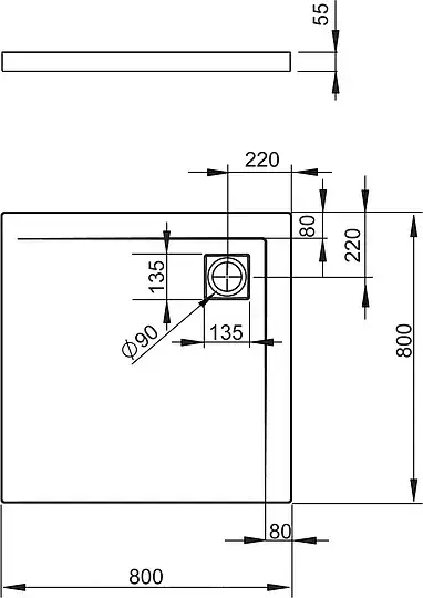 Radaway Argos C Душевой поддон из акрила, 90х90х5,5h см, цвет: белый глянцевый 4AC99-01