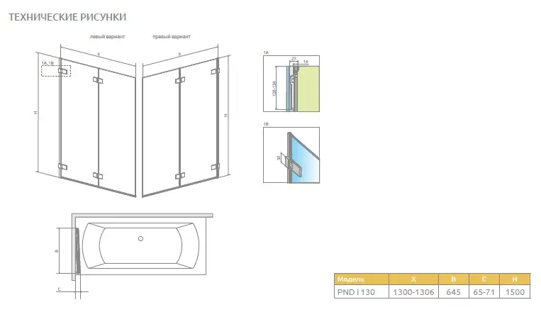 Radaway Arta PND I Шторка на ванну складная, прозрачная 8 мм, 130х150h см, цвет: хром глянцевый 210213-01L