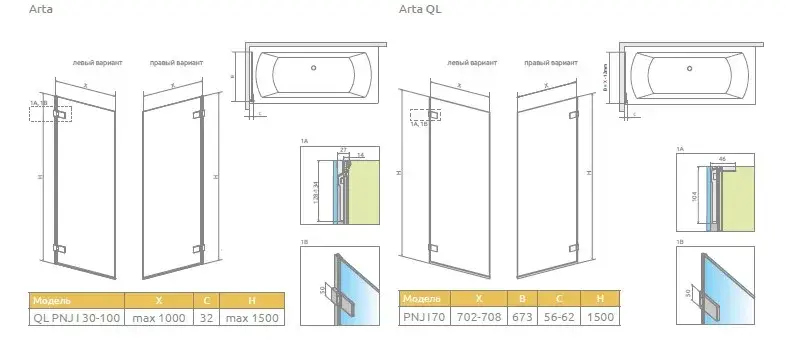 Radaway Arta PNJ Шторка на ванну распашная прозрачная 8 мм, Easy Clean 70х150h см, цвет: хром глянец 210101-01L