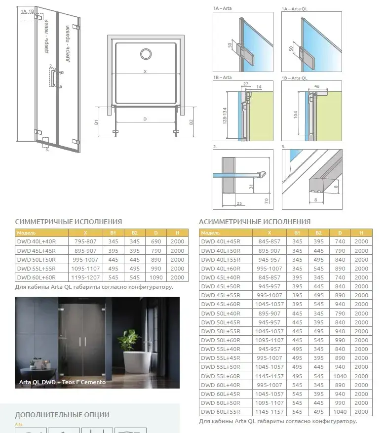 Radaway Arta QL DWD Душевая дверь в нишу, правая 8 мм, Easy Clean 25-50х200h см, цвет: хром глянец 10102507-03-01R