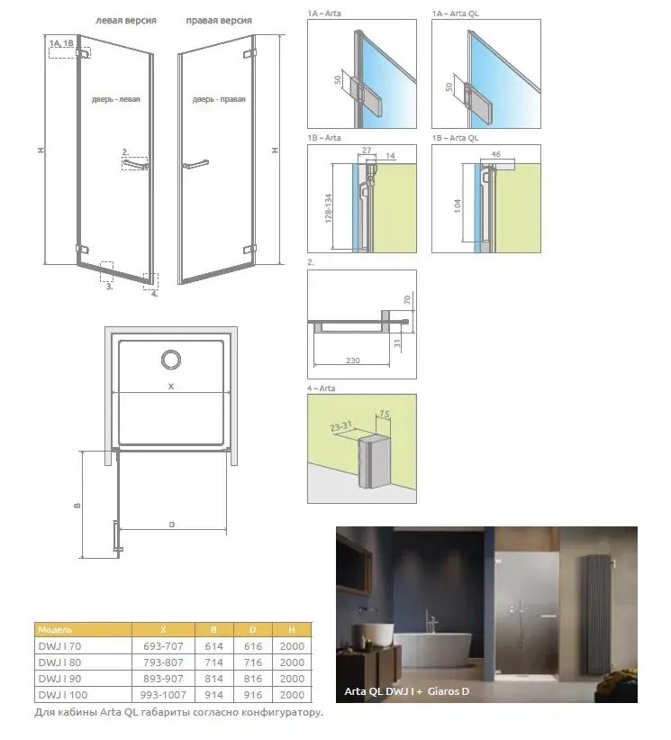 Radaway Arta QL DWJ I Душевая дверь в нишу, правая, прозрачная 50-100х200h см, цвет: хром глянцевый 10102503-03-01R