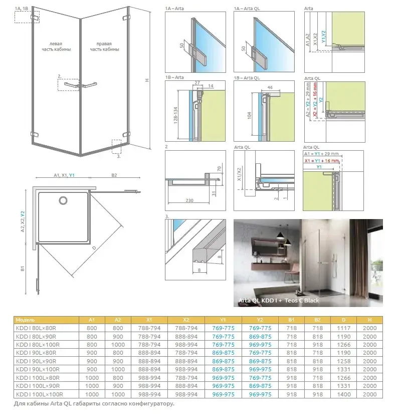 Radaway Arta QL KDD I Душевая дверь, правая 8 мм, Easy Clean 50-100х200h см, цвет: хром глянец 10102502-03-01R