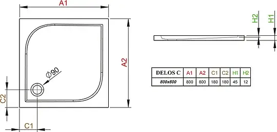 Radaway Delos C Душевой поддон из акрила, 90х90х15h см, цвет: белый глянцевый 4C99170-03
