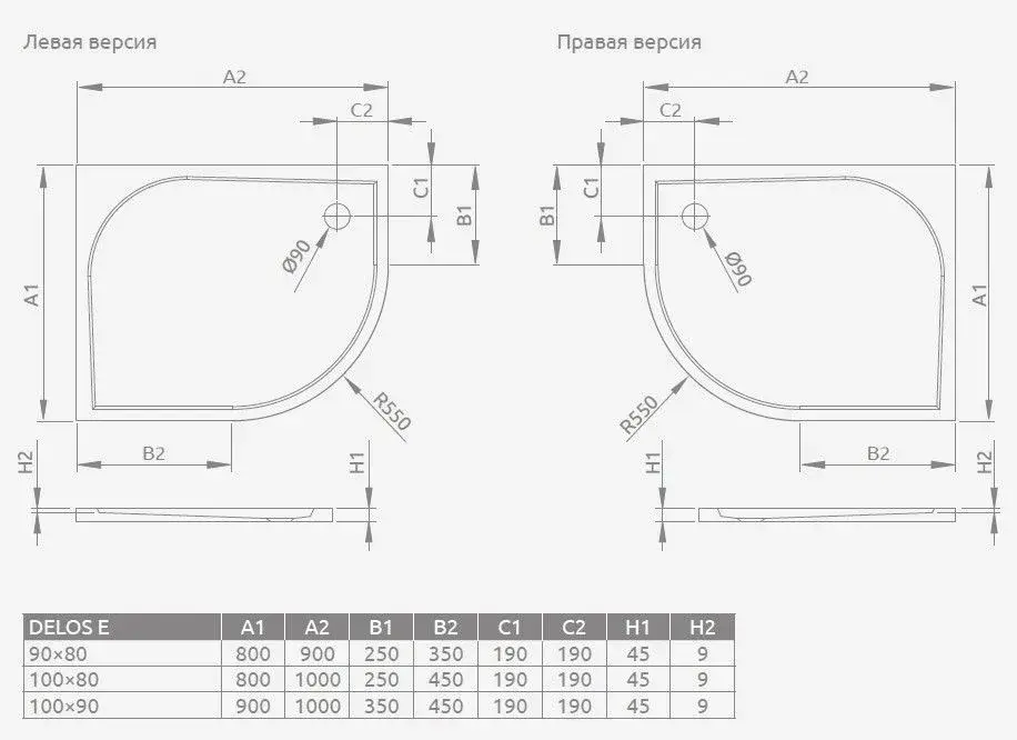 Radaway Delos E Поддон для душа из акрила, 100х90х4,5h см, правый, цвет: белый глянцевый SDE1090-01R