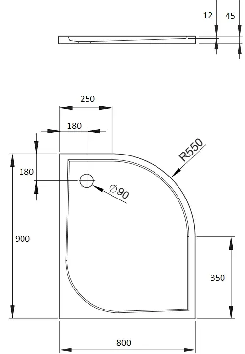 Radaway Delos E Поддон для душа из акрила, 90х80х4,5h см, левый, цвет: белый глянцевый SDE9080-01L