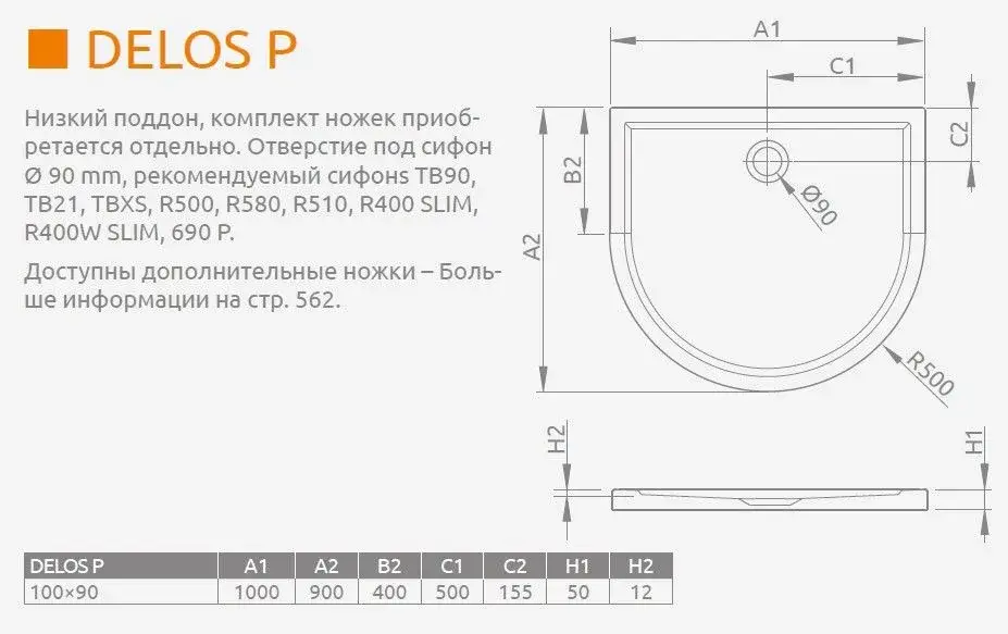 Radaway Delos P Поддон для душа из акрила, 100х90х5h см, цвет: белый глянцевый 4Z19035-03N