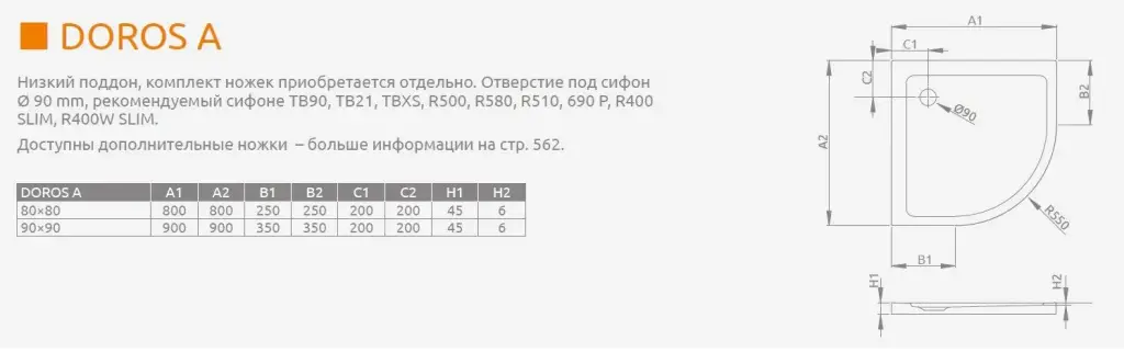 Radaway Doros A Поддон для душа из акрила, 80х80х11,5h см, цвет: stone white SDRA8080-01-04S