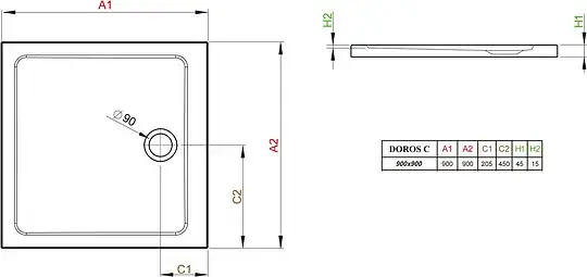 Radaway Doros C Душевой поддон из акрила, 90х90х4,5h см, цвет: белый глянцевый SDRC9090-01