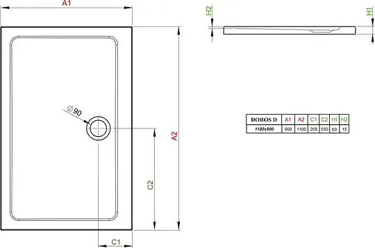 Radaway Doros D Душевой поддон из акрила, 110х90х5h см, цвет: белый глянцевый SDRD1190-01