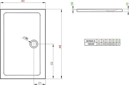 Radaway Doros D Душевой поддон из акрила, 120х80х5h см, цвет: белый глянцевый SDRD1280-01