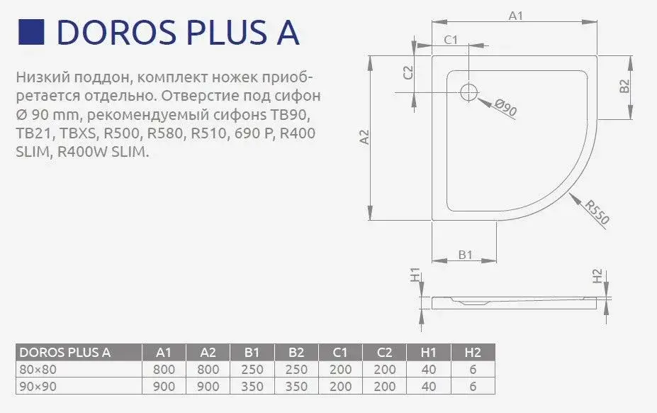 Radaway Doros Plus A Поддон для душа из акрила, 80х80х4h см, цвет: белый глянцевый SDRPA8080-01