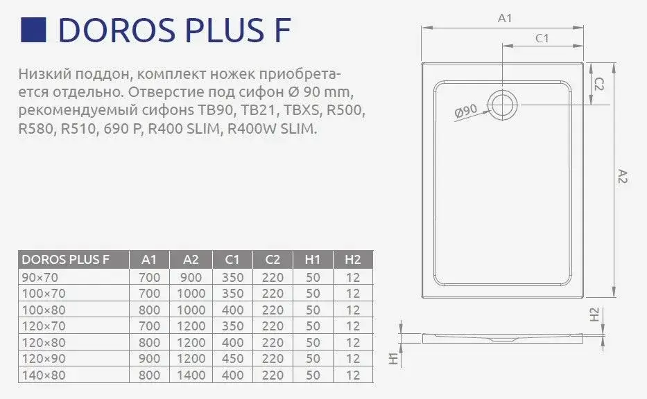 Radaway Doros Plus F Поддон для душа из акрила, 90х70х5h см, цвет: белый глянцевый SDRFP9070-01