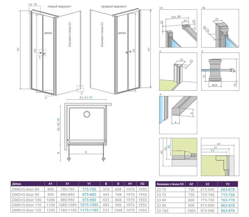 Radaway Eos DWD+S Душевая дверь, прозрачная 6 мм, Easy Clean 90х197h см, цвет: хром глянцевый 13799491-01