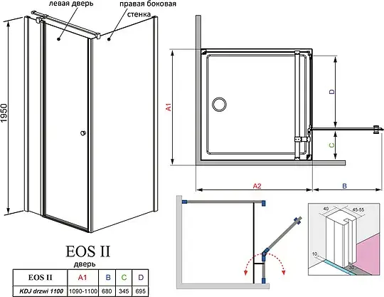 Radaway Eos II Дверь для душевого уголка KDJ 110x195h см L, цвет: хром 3799423-01L