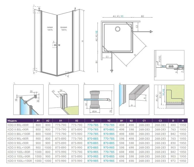 Radaway Eos KDD II Душевая дверь, правая, прозрачная 6 мм, Easy Clean 90х195h см, цвет: хром глянец 13799461-01R