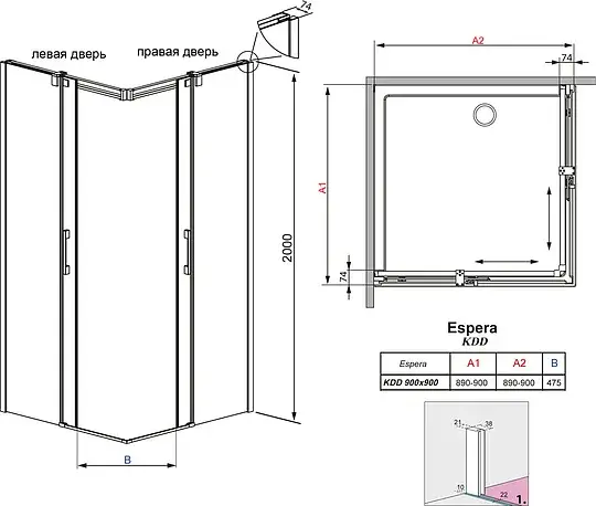 Radaway Espera KDD Душевая дверь, правая, прозрачная 8 мм, Easy Clean 90х200h см, цвет: хром глянец 380151-01R