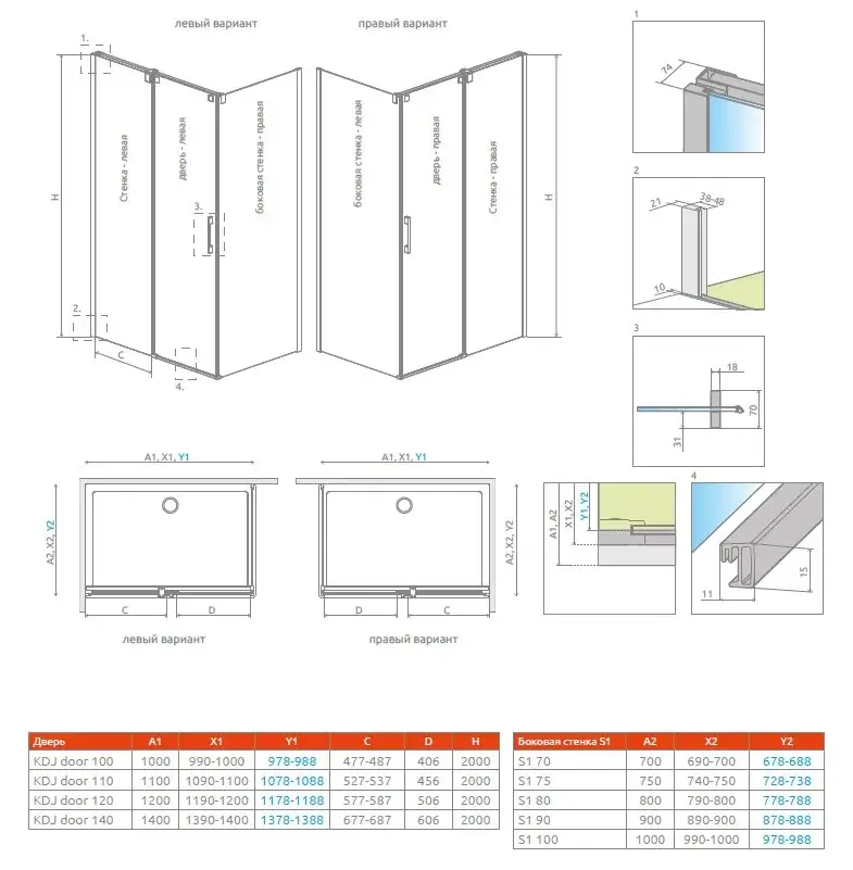 Radaway Espera KDJ Боковая стенка, прозрачная 8 мм, Easy Clean 100х200h см, цвет: хром глянцевый 380140-01L