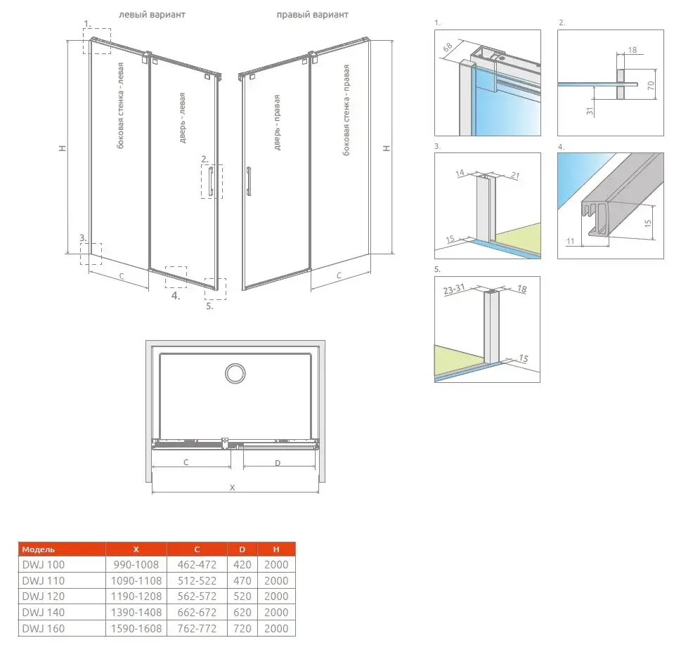 Radaway Espera Pro DWJ Боковая стенка, прозрачная 8 мм, Easy Clean 56х200h см, цвет: хром глянцевый 10091120-01-01L