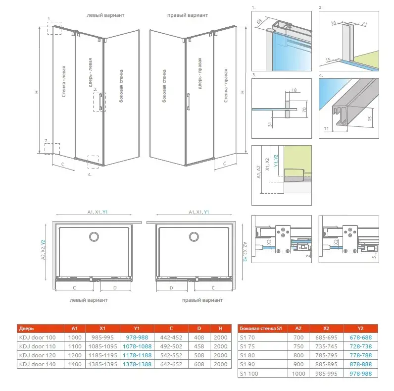 Radaway Espera Pro KDJ Боковая стенка, прозрачная 8 мм, Easy Clean 100х200h см, цвет: хром глянцевый 10093100-01-01